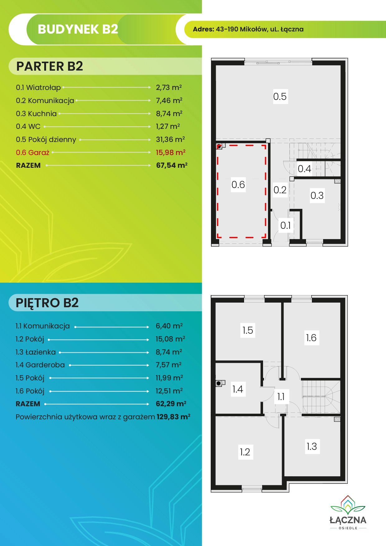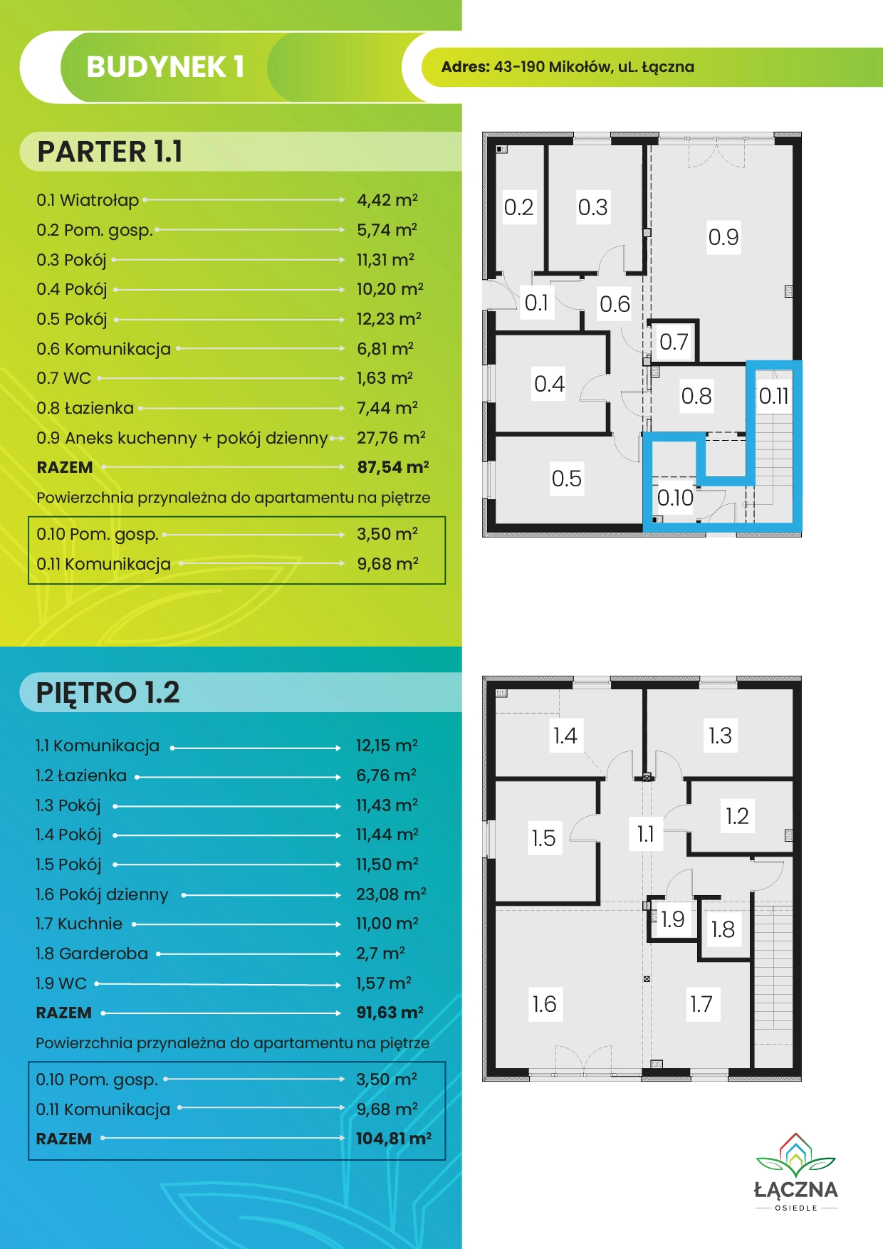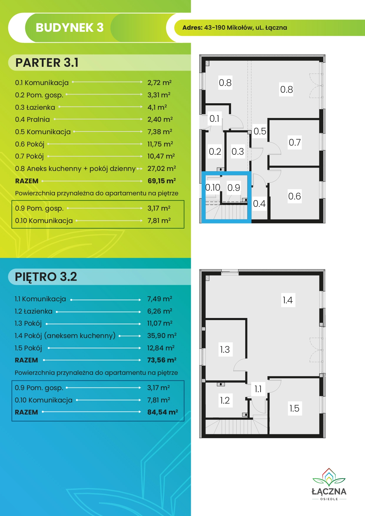 Osiedle Łączna stawia na innowacyjne i ekologiczne rozwiązania. Domy i mieszkania są energooszczędne, co przekłada się na niższe koszty utrzymania. Dzięki zastosowaniu nowoczesnych materiałów budowlanych oraz technologii, takich jak ogrzewanie podłogowe, osiedle spełnia najwyższe standardy komfortu termicznego.