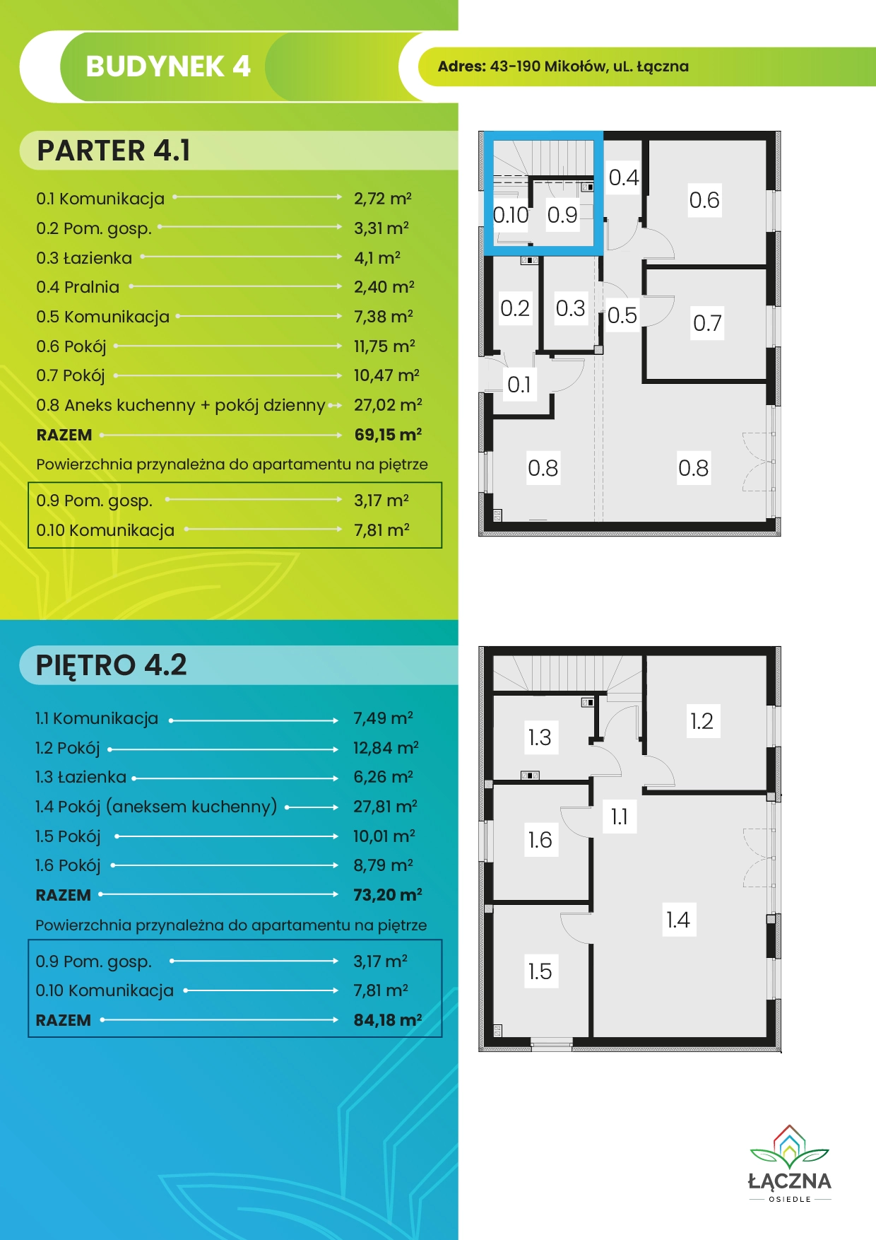 Osiedle znajduje się w cichej i zielonej okolicy Mikołowa, a jednocześnie oferuje łatwy i szybki dostęp do najważniejszych punktów miasta. Bliskość tras wylotowych sprawia, że dojazd do Katowic, Gliwic czy Tychów jest wygodny i szybki. To doskonałe miejsce dla tych, którzy chcą połączyć życie w spokojnej okolicy z dostępem do miejskich udogodnień.